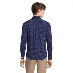 Lands’ End Men’s Tailored Fit No Iron Pattern Supima Cotton Pinpoint Buttondown Collar Dress Shirt