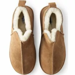 Lands’ End Men’s Suede Leather Fuzzy Shearling Fur Clog Slippers