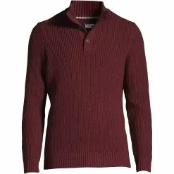 Lands’ End Men’s Cotton Blend Button Mock Neck Sweater