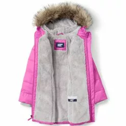 Lands’ End Girls Winter Fleece Lined Down Alternative ThermoPlume Coat