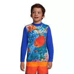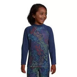 Lands’ End Boys Long Sleeve Mock Neck Graphic UPF 50 Swim Rash Guard