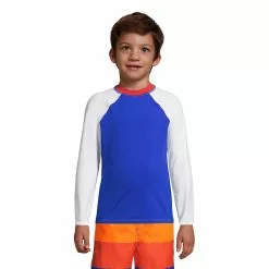 Lands’ End Boys Husky Long Sleeve Color Block UPF 50 Swim Rash Guard