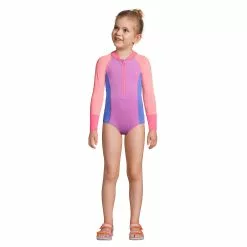 Lands’ End Girls Long Sleeve Half Zip One Piece UPF 50 Swimsuit