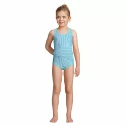 Lands’ End Girls Wrap Seersucker One Piece Swimsuit