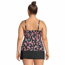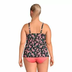 Lands’ End Women’s Plus Size Chlorine Resistant V-Neck Tulip Hem Tankini Swimsuit Top With Adjustable Straps