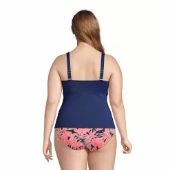 Lands’ End Women’s Plus Size Chlorine Resistant V-Neck Wrap Underwire Tankini Swimsuit Top Adjustable Straps