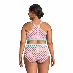 Lands’ End Women’s Plus Size Chlorine Resistant Zip Front Tankini Swimsuit Top