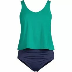 Lands’ End Women’s Plus Size Chlorine Resistant V-neck One Piece Fauxkini Swimsuit Faux Tankini Top