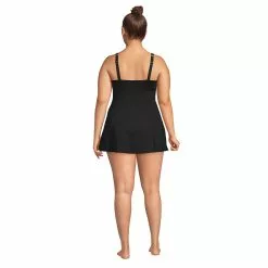 Lands’ End Women’s Plus Size Chlorine Resistant V-neck Tulip Wrap Swim Dress One Piece Swimsuit