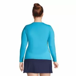 Lands’ End Women’s Plus Size Crew Neck Long Sleeve Rash Guard UPF 50 Sun Protection Modest Swim Tee