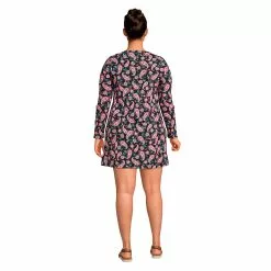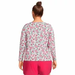 Lands’ End Women’s Plus Size Crew Neck Long Sleeve Rash Guard UPF 50 Sun Protection Modest Swim Tee Print