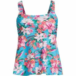 Lands’ End Women’s Plus Size Flutter Scoop Neck Tankini Top Comfort Adjustable Straps