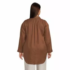 Lands’ End Women’s Plus Size Linen Long Sleeve Oversized Extra Long Tunic Top