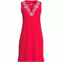 Lands’ End Women’s Plus Size Embroidered Cotton Jersey Sleeveless Swim Cover-up Dress
