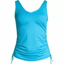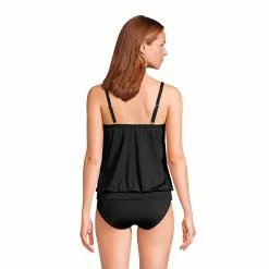 Lands’ End Women’s Chlorine Resistant Blouson Tummy Hiding Tankini Swimsuit Top Adjustable Straps