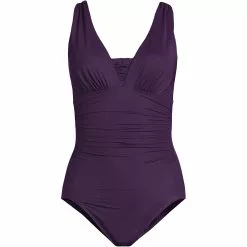 Lands’ End Women’s SlenderSuit Grecian Tummy Control Chlorine Resistant One Piece Swimsuit
