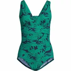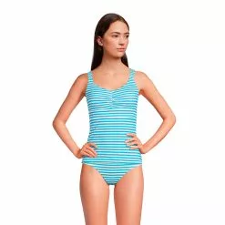 Lands’ End Women’s SlenderSuit Tummy Control Chlorine Resistant V-neck Wrap One Piece Swimsuit