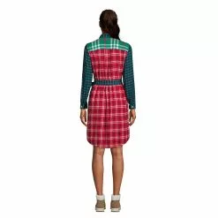 Lands’ End Women’s Cotton Flannel Long Sleeve Knee Length Shirt Dress