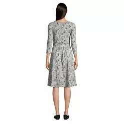 Lands’ End Women’s 3/4 Sleeve Twist Front Fit And Flare Dress