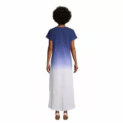 Lands’ End Women’s Crinkle Knit Short Sleeve High Low Midi Dress