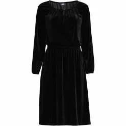Lands’ End Women’s Knee Length Velvet Peasant Dress