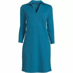 Lands’ End Women’s Cotton Slub 3/4 Sleeve Polo Dress