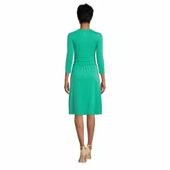 Lands’ End Women’s Lightweight Cotton Modal 3/4 Sleeve Fit And Flare V-Neck Dress