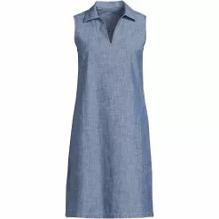 Lands’ End Women’s Cotton Poplin Sleeveless Split Neck Dress