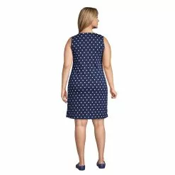 Lands’ End Women’s Plus Size Cotton Jersey Sleeveless Swim Cover-up Dress Print
