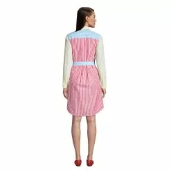 Lands’ End Women’s Long Sleeve Seersucker Button Front Shirt Dress