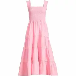 Lands’ End Women’s Sleeveless Cotton Poplin Smocked Dress