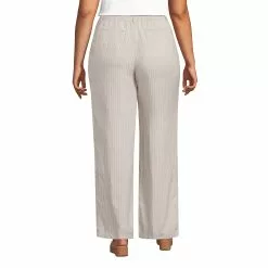 Lands’ End Women’s Plus Size High Rise Elastic Back Wide Leg Linen Pleated Pants