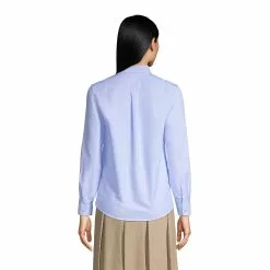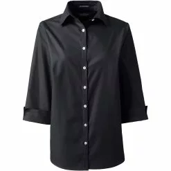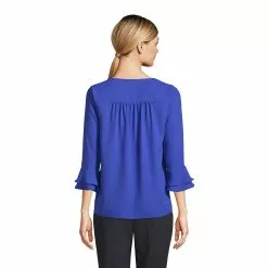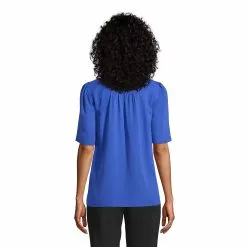 Lands’ End Women’s Cotton Polyester 3/4 Sleeve Pleat Neck Top