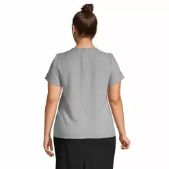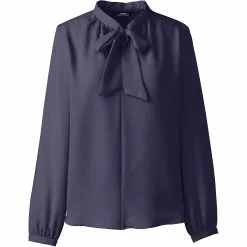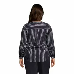 Lands’ End Women’s Plus Size Shirred Long Sleeve Split Neck Blouse