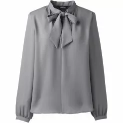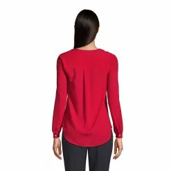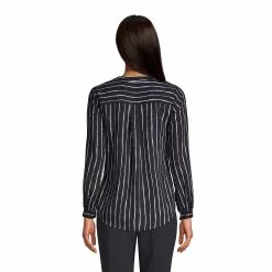 Lands’ End Women’s Shirred Long Sleeve Stripe Split Neck Blouse