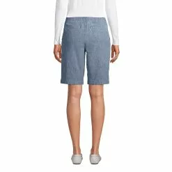Lands’ End Women’s Mid Rise Elastic Waist Pull On 10″ Chino Seersucker Bermuda Shorts