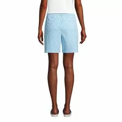 Lands’ End Women’s Mid Rise Elastic Waist Pull On 7″ Chino Seersucker Shorts