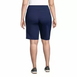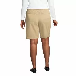 Lands’ End Women’s Plus Size Mid Rise Elastic Waist Pull On 10″ Knockabout Chino Bermuda Shorts