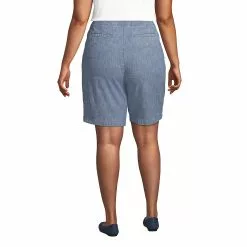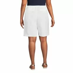 Lands’ End Women’s Plus Size High Rise Pull On Elastic Waist 10″ Linen Bermuda Shorts