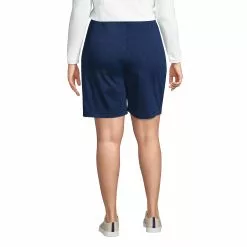 Lands’ End Women’s Plus Size High Rise Sport Knit Elastic Waist Denim Jean Shorts