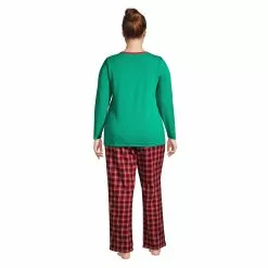 Lands’ End Women’s Plus Size Pajama Set Knit Long Sleeve T-Shirt And Flannel Pants