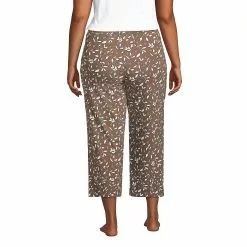 Lands’ End Women’s Plus Size Lounge Mid Rise Wide Leg Crop Pajama Pants