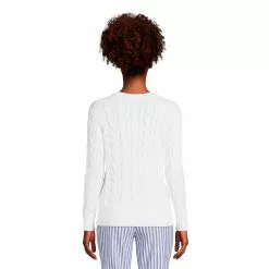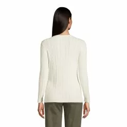 Lands’ End Women’s Cotton Modal Half Sleeve Scoop Cable Pullover Sweater