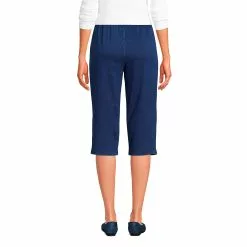 Lands’ End Women’s Sport Knit Denim High Rise Elastic Waist Pull On Capri Pants