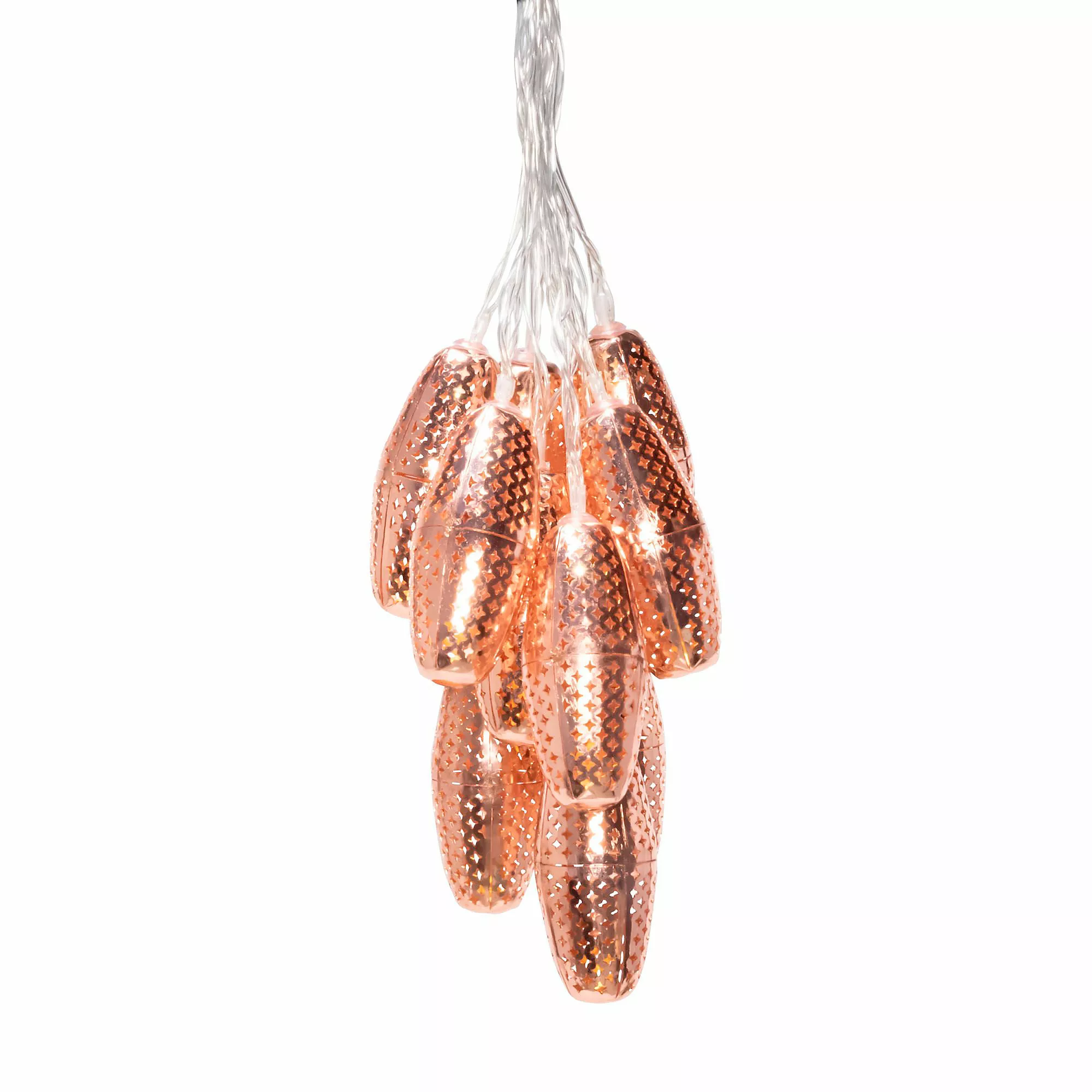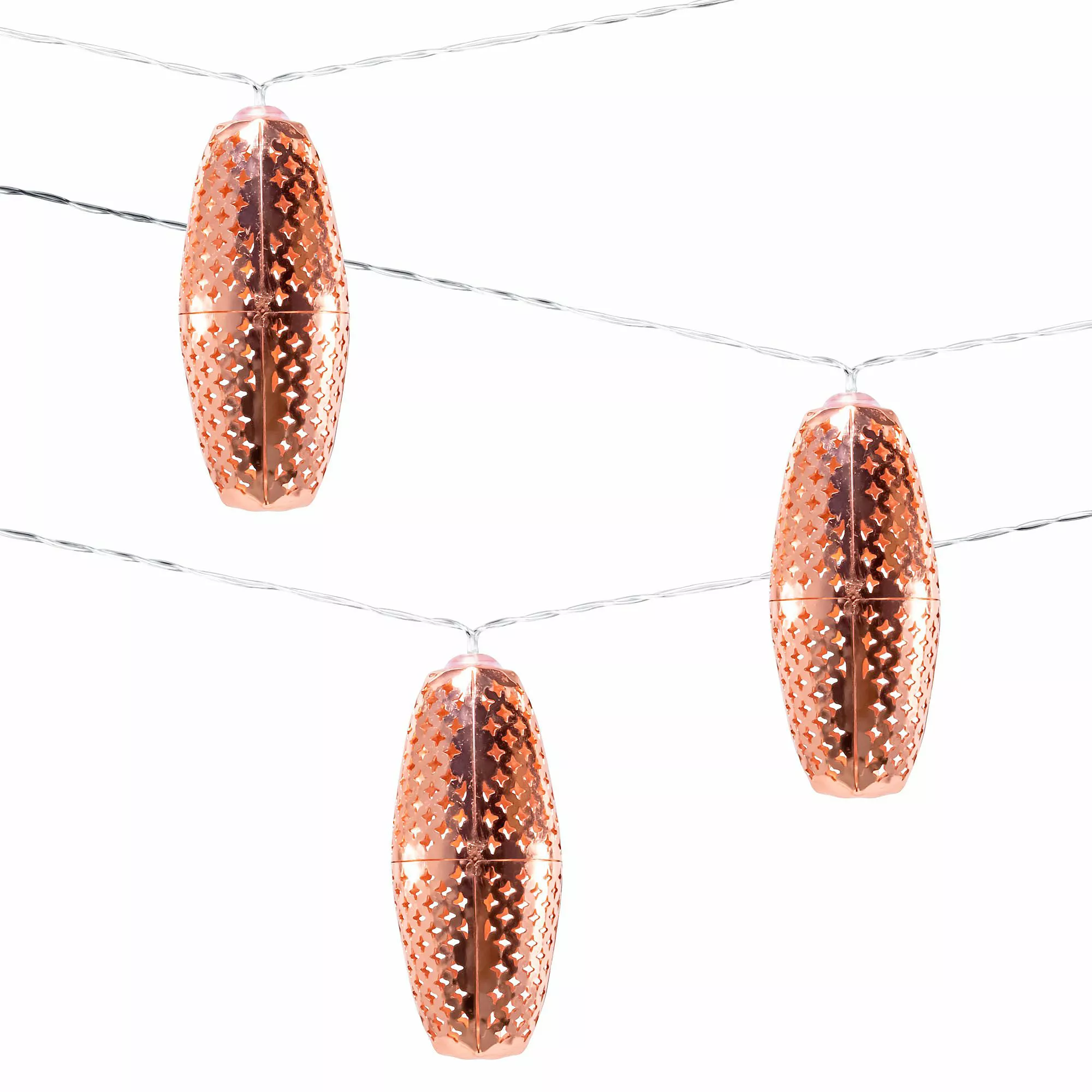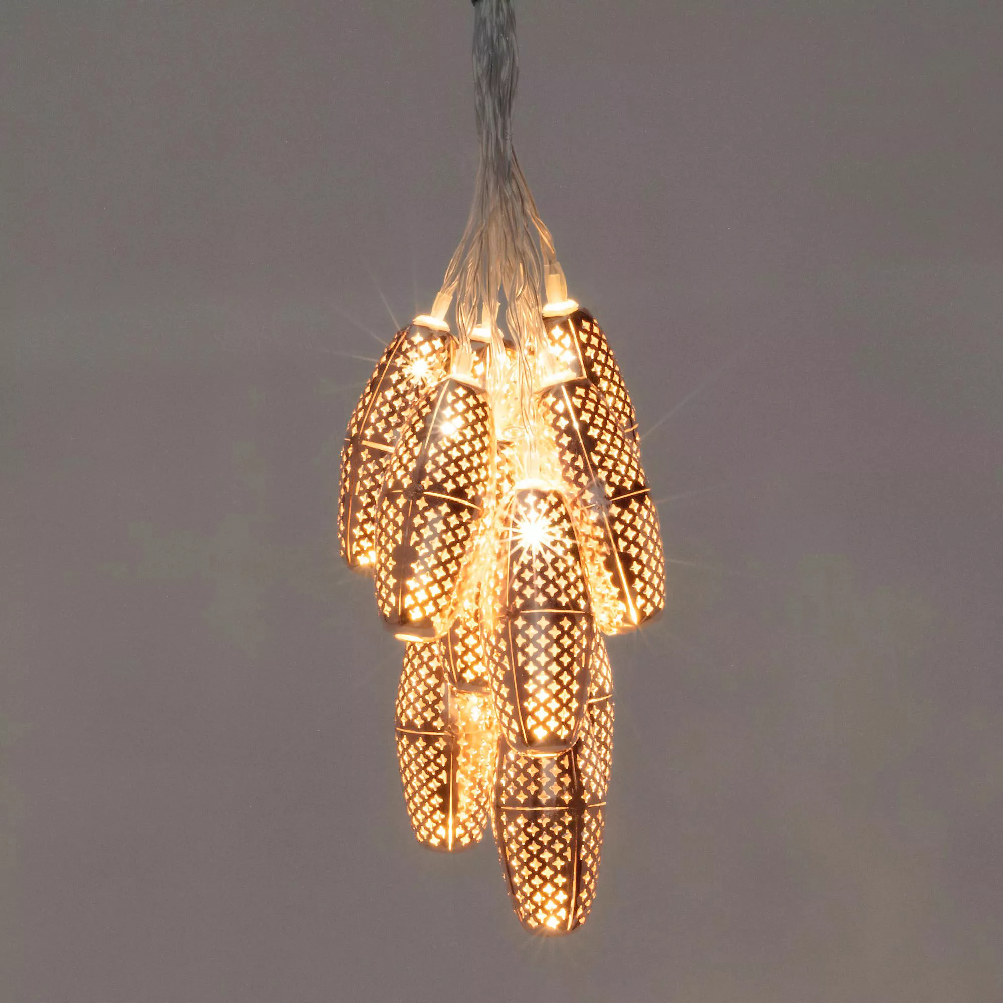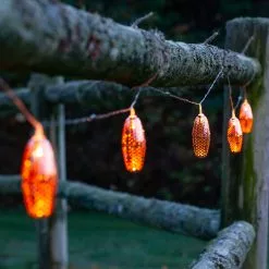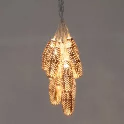 Inspired by the iconic lighting in the bazaars of Morocco, these punched metal solar string lights bring a sophisticated and elegant look to any outdoor space. Uniquely designed, the Marrakesh solar string lights shine by day and glimmer with the gorgeous punched patterns at night. Because the solar collector is spaced many feet away from the first bulb, these lights are not only eco-friendly, but also easy to hang.
