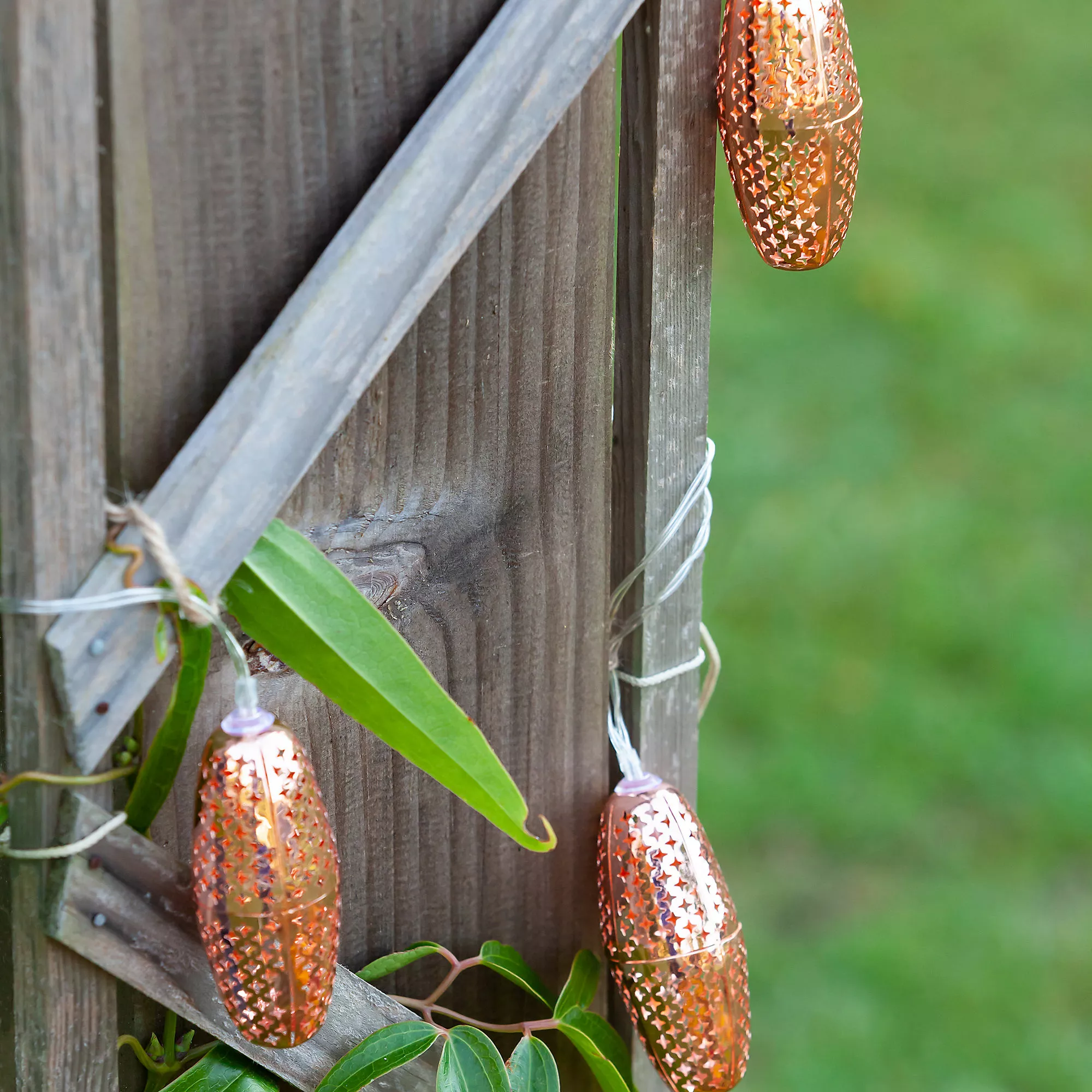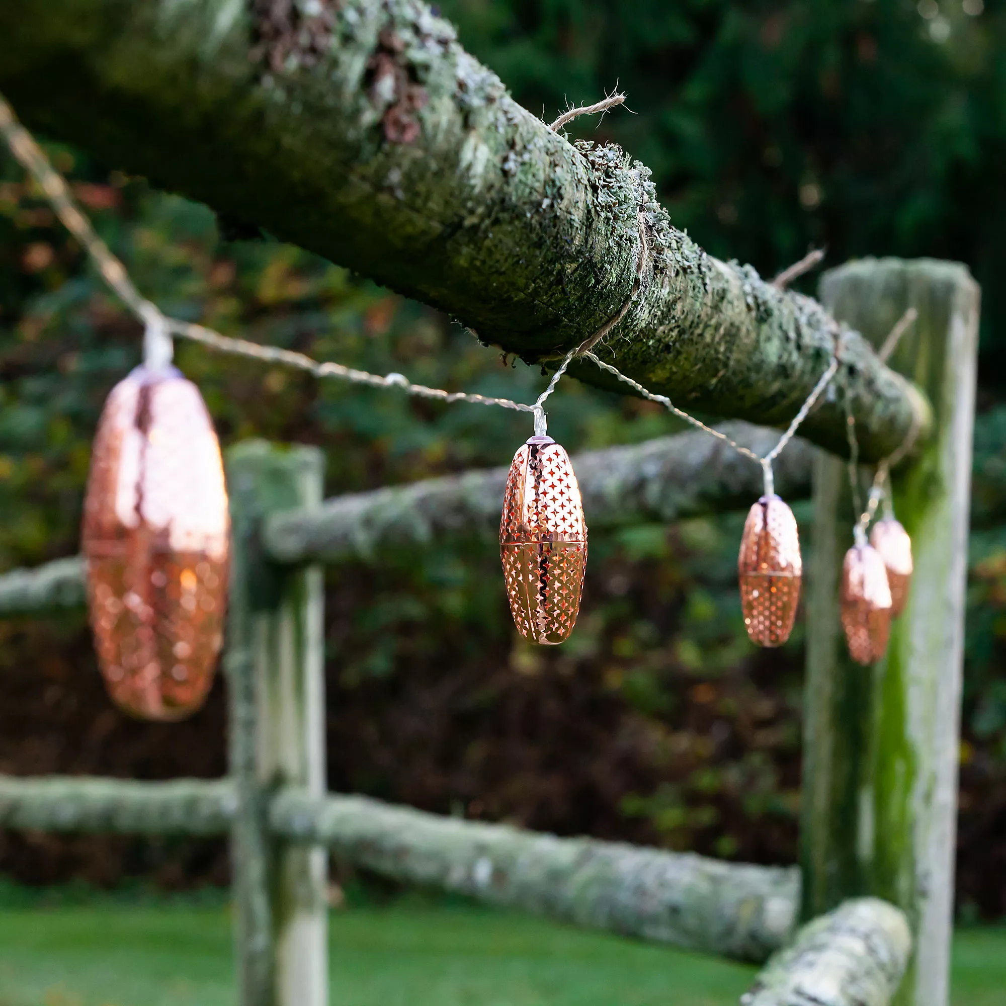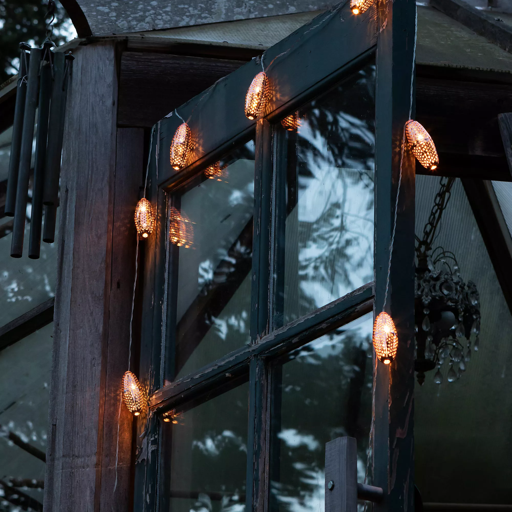 Inspired by the iconic lighting in the bazaars of Morocco, these punched metal solar string lights bring a sophisticated and elegant look to any outdoor space. Uniquely designed, the Marrakesh solar string lights shine by day and glimmer with the gorgeous punched patterns at night. Because the solar collector is spaced many feet away from the first bulb, these lights are not only eco-friendly, but also easy to hang.