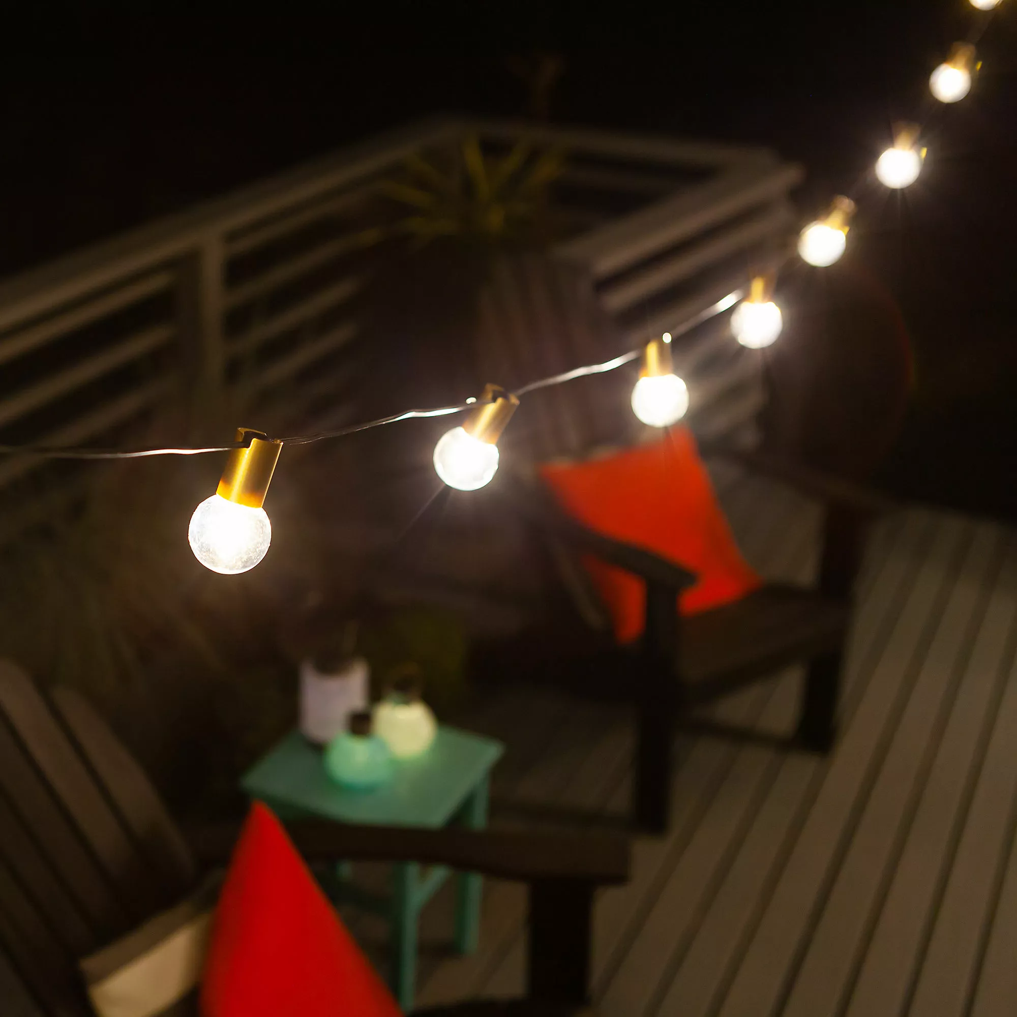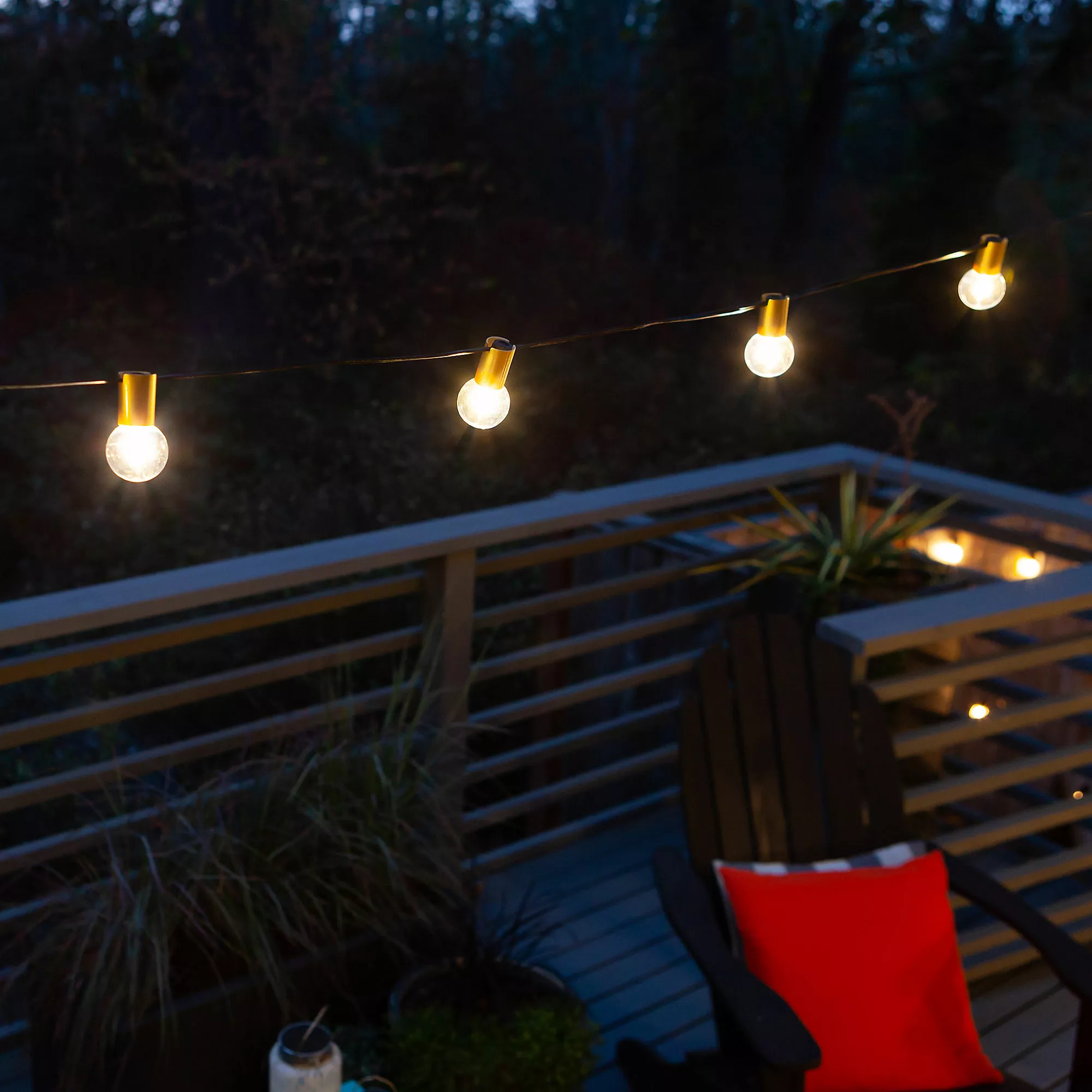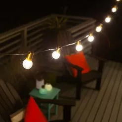 With their clear, shatter-resistant plastic bulbs and warm white LED’s, these bistro-style string lights complement any indoor or outdoor space. The 25 foot strand of 25 bulbs is weather-resistant in rain or snow.