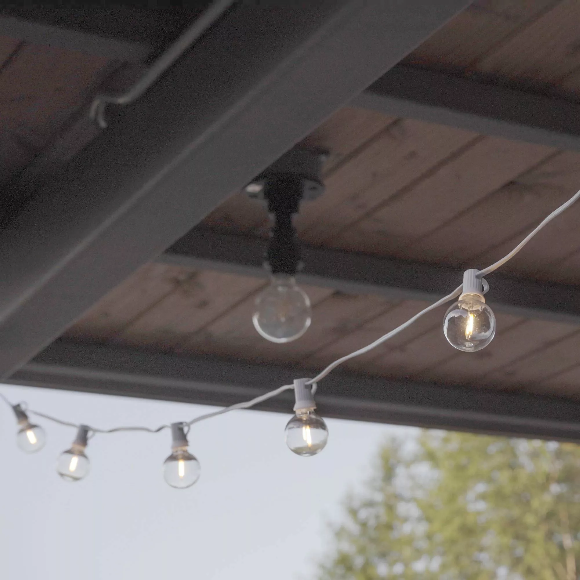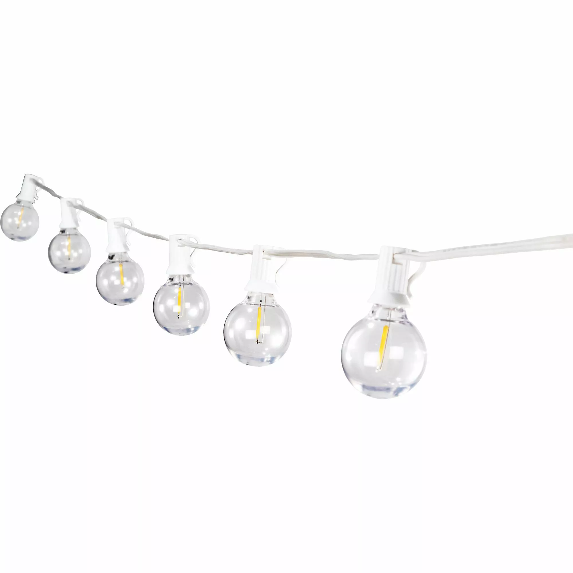 With their clear, shatter-resistant plastic bulbs and warm white LED’s, these bistro-style string lights complement any indoor or outdoor space. The 25 foot strand of 25 bulbs is weather-resistant in rain or snow.