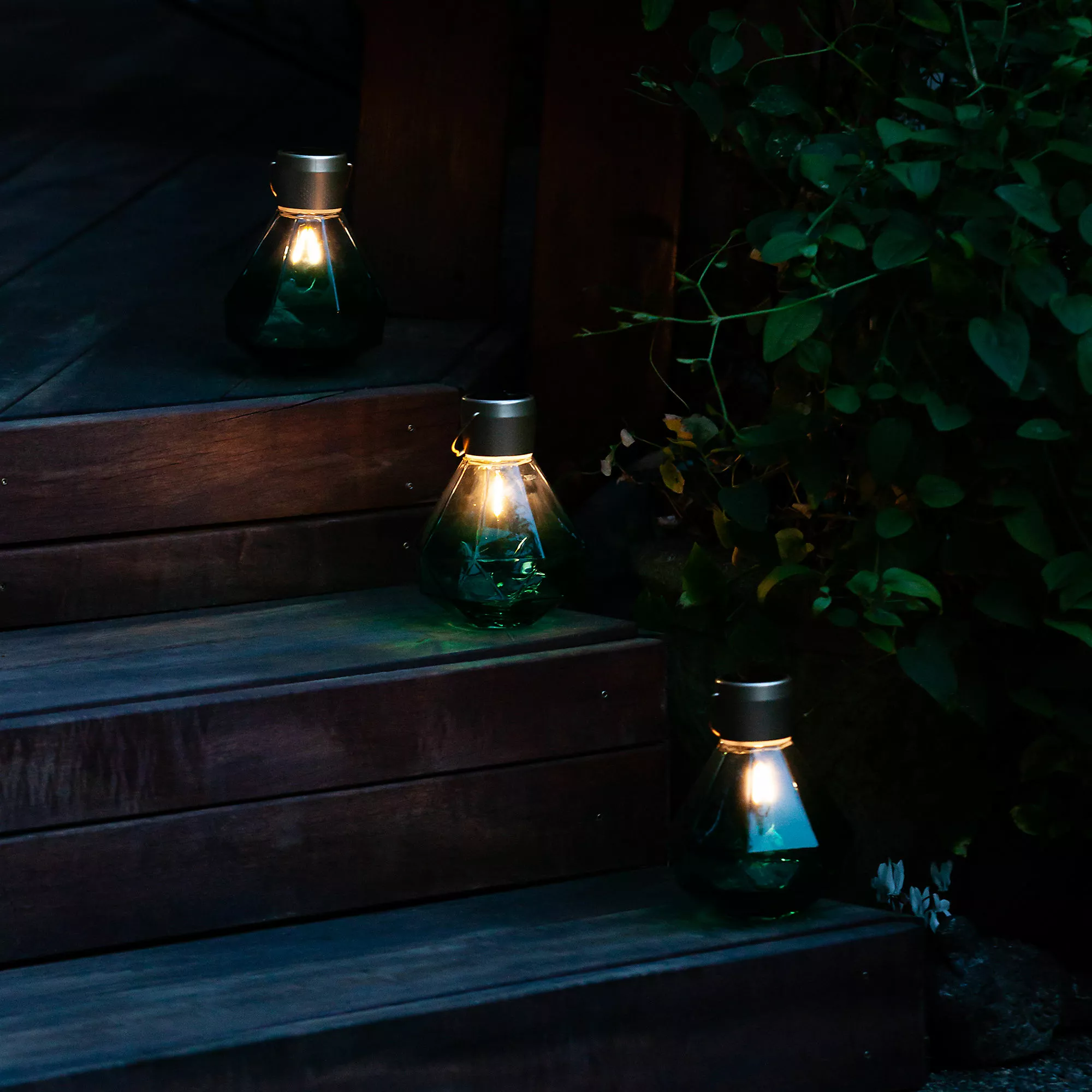 The Gem light is the perfect combination of gorgeous faceted blown glass and the warm glow of an Edison-style bulb. Powered by the sun, our artisan-designed Gem Light is perfect on a table top, nestled in a garen or adorning a shepherd’s hook along a favorite pathway.