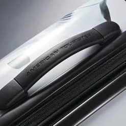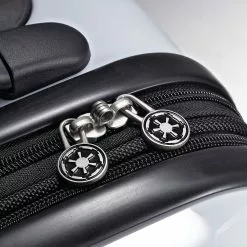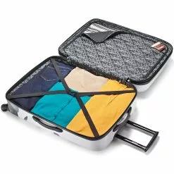 Star Wars fans will love to travel with their gear packed inside this sleek hardside spinner case from American Tourister. The American Tourister Star Wars All Ages Spinner case is constructed from polycarbonate material and features a classic shape with an eye-catching Star Wars print, a push-button pull handle, and spinner wheels that make it incredibly easy to maneuver. The interior is fully lined and detailed with crisscrossing tie-down straps, a zippered pocket to hold delicate items, and a zip around divider that creates two separate packing compartments. Detailed with top and side grab handles for easy lifting, this case comes in a variety of different Star Wars character prints.